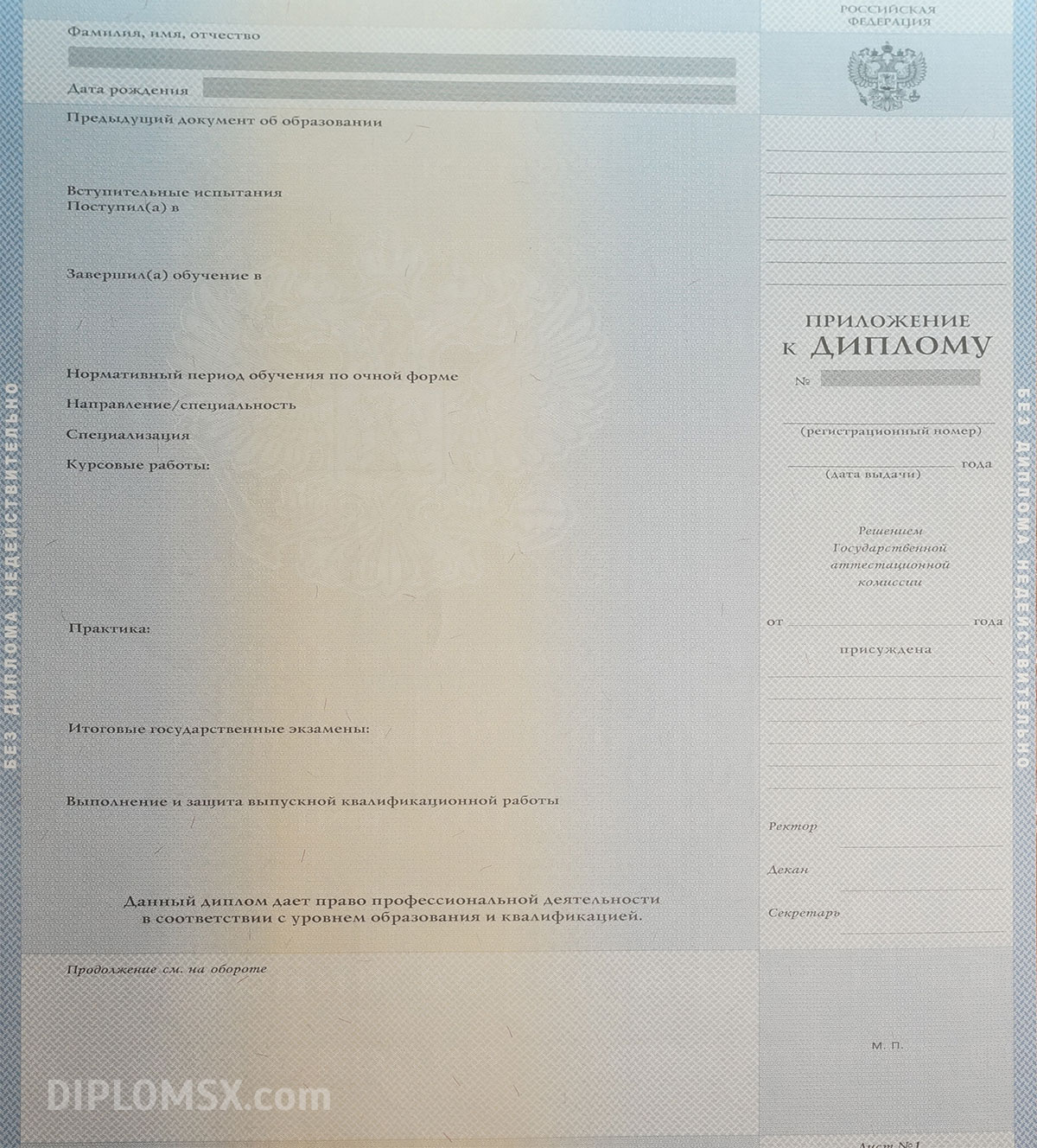 Мы работаем исключительно с оригинальными бланками государственного образца ГОЗНАК, имеющими все необходимые степени защиты, голограммы, водяные знаки и отличительные атрибуты настоящего документа об окончании Вуза. Если сравнивать наш диплом и типографскую копию, которую нередко предлагают другие организации, то документы, предоставляемые нами, выгодно отличаются по всем параметрам, потому что они являются подлинными. Их невозможно отличить от выдаваемых университетами и институтами. С ними легко трудоустроиться, можно пройти любую проверку и быть уверенным в своем будущем. Мы бесплатно доставляем документ по всей территории нашей страны и странам СНГ.